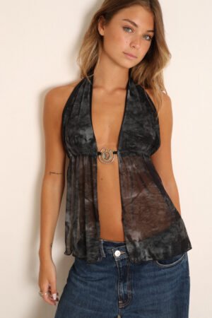 top de tul forrado en el busto con aplique.
